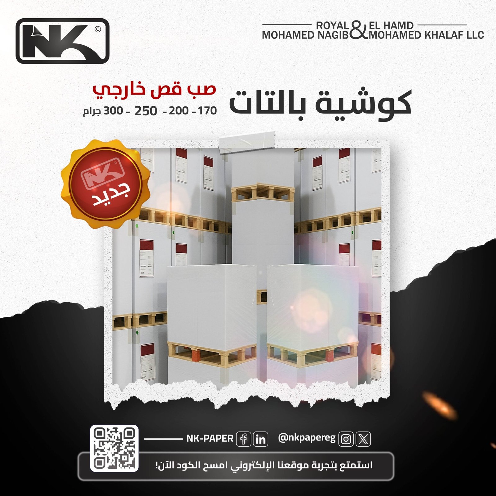 نفتخر بكوننا جزءًا من مجموعة NK Paper الرائدة في مصر في تجارة الورق، حيث نقدم حلولاً ورقية متكاملة بجودة عالية تلبي احتياجات مختلف القطاعات.